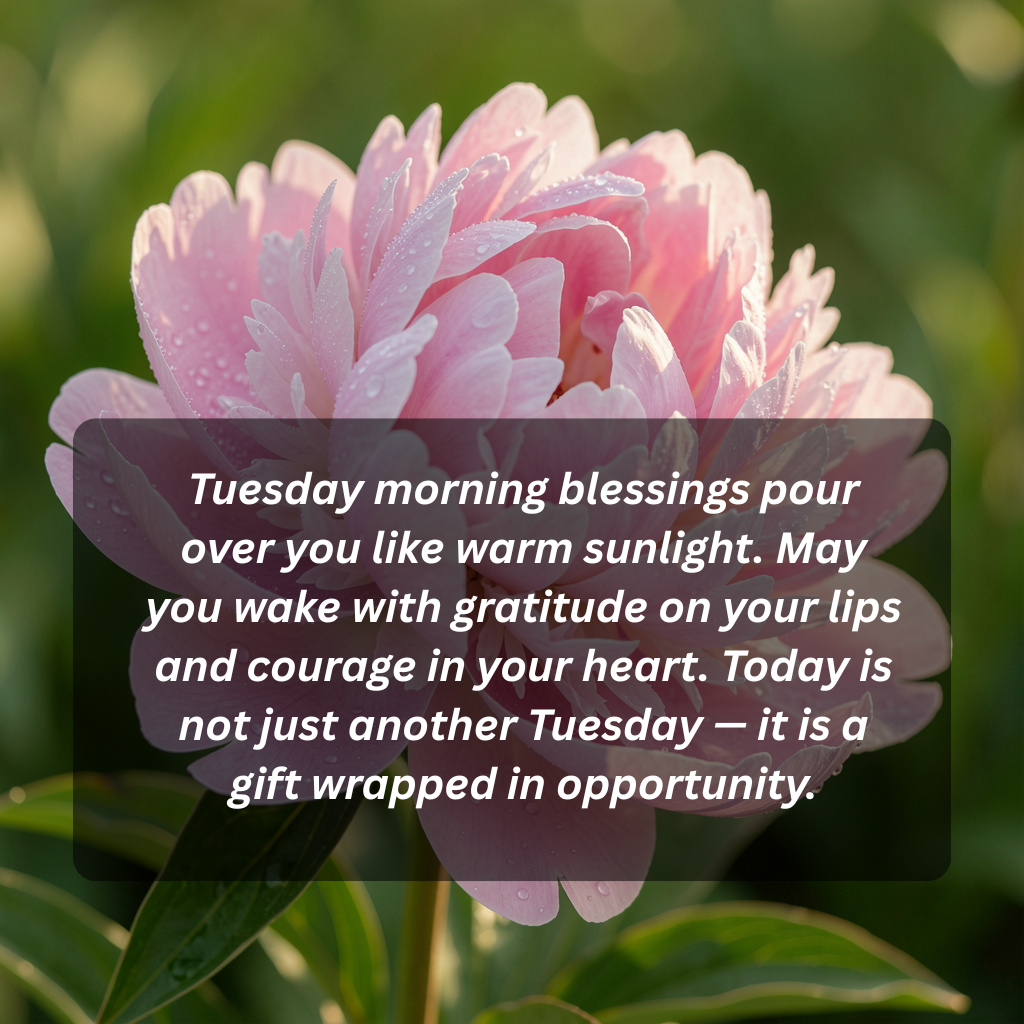 Tuesday morning blessings pour over you like warm sunlight. May you wake with gratitude on your lips and courage in your heart. Today is not just another Tuesday — it is a gift wrapped in opportunity.