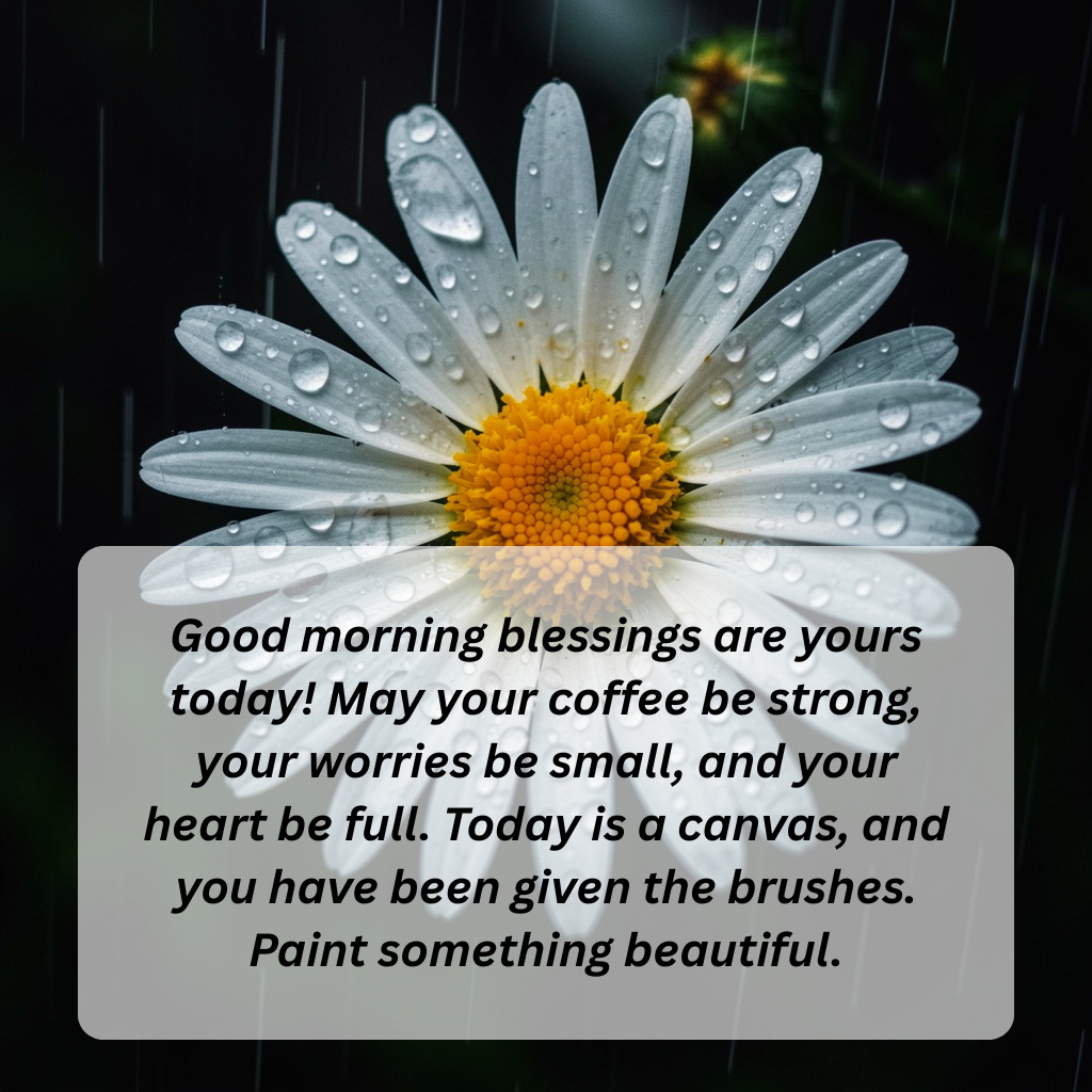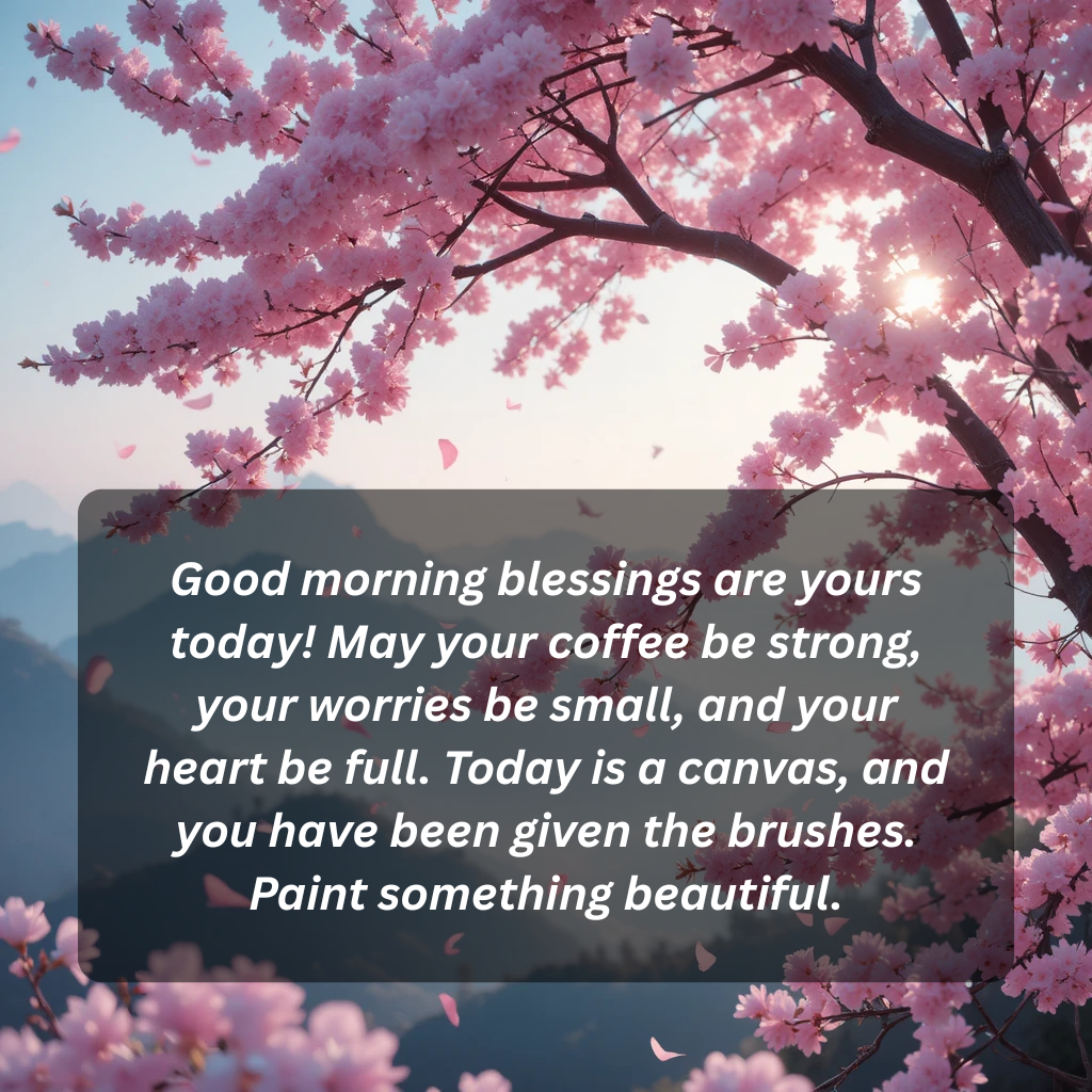 Rise and shine — good morning blessings are yours today! May your coffee be strong, your worries be small, and your heart be full. Today is a canvas, and you have been given the brushes. Paint something beautiful.