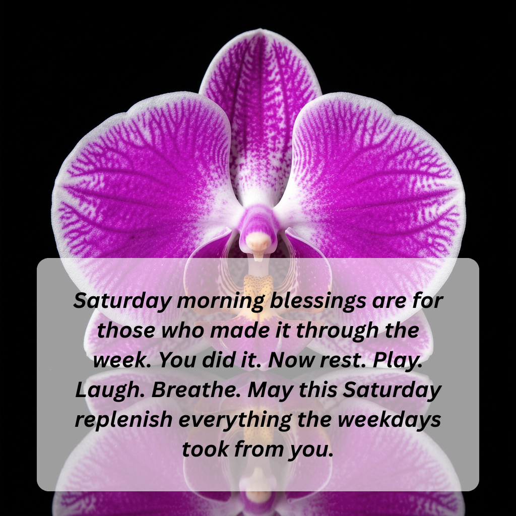 May your Saturday be as beautiful as the plans you dreamed about on Monday. Saturday blessings remind you that hard work deserves reward. Enjoy today — fully, without guilt.
