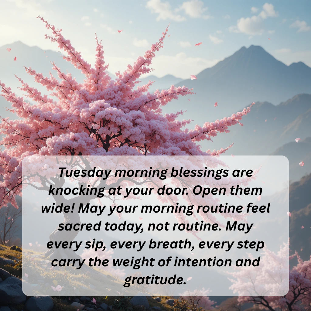 Tuesday morning blessings are knocking at your door. Open them wide! May your morning routine feel sacred today, not routine. May every sip, every breath, every step carry the weight of intention and gratitude.