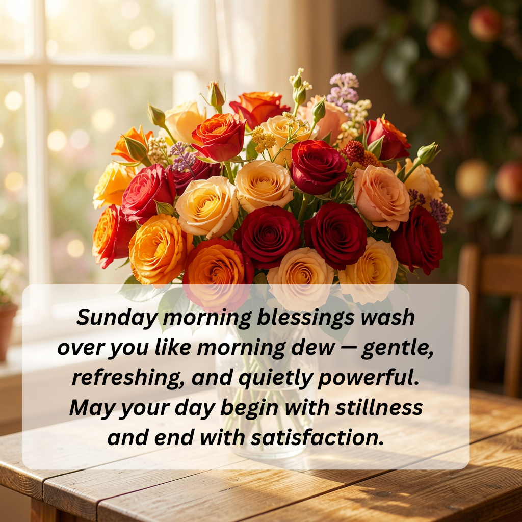 Sunday morning blessings wash over you like morning dew — gentle, refreshing, and quietly powerful. May your day begin with stillness and end with satisfaction.
